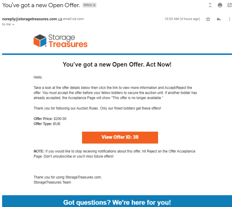 StorageTreasures can now communicate about account updates using text messaging! This is a quick and easy way for us to get you time-sensitive auction updates. We are debuting the text messaging service with our new My Offers feature.